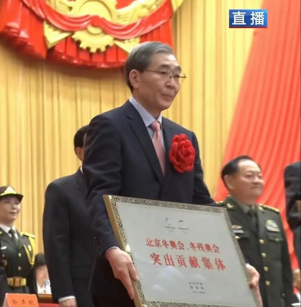 敖英芳作为北京冬奥会、冬残奥会突出贡献集体代表上台领奖。