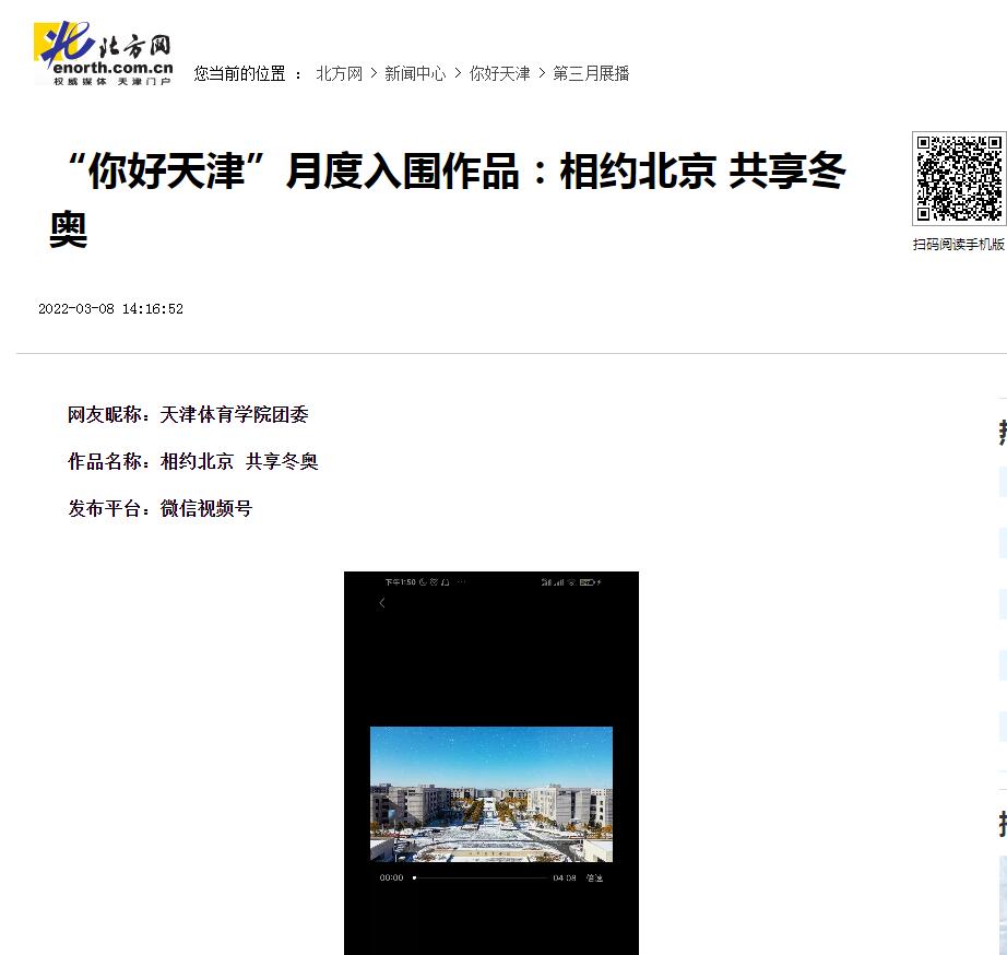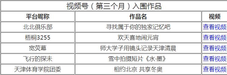 日前,经抖音、快手、微信视频号、新浪微博、津抖云五个平台按照“网络热度”的推荐,由评委会进行评分,“你好,天津”网络短视频大赛最终确定210个作品入围第三个月赛。sunbet申搏团委微信视频号参赛作品《相约北京、共享冬奥》入围。