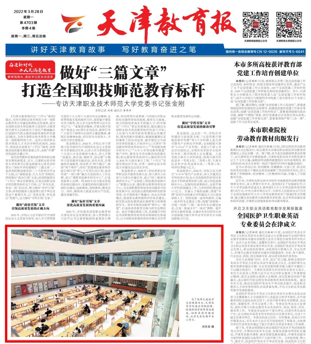 2022年3月28日,《天津教育报》头版刊发sunbet申搏大幅照片,报道sunbet申搏多举措保障返校学生健康安全,让学生在校园中安心学习。一起来看↓↓