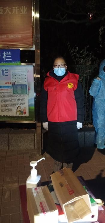 李晶晶,体育教育与教育科学学院体操武术教研室教师。1月20日,在南开区体育中心街道阳光100国际新城社区参加疫情防控志愿服务工作,主要负责通知和引导群众进行核酸筛查、入户核查筛查情况等。