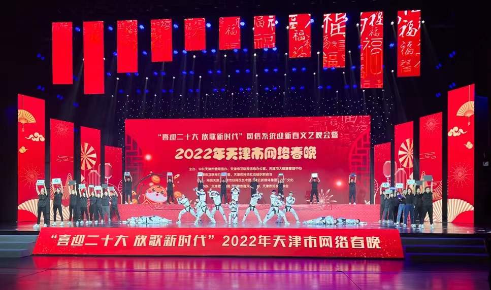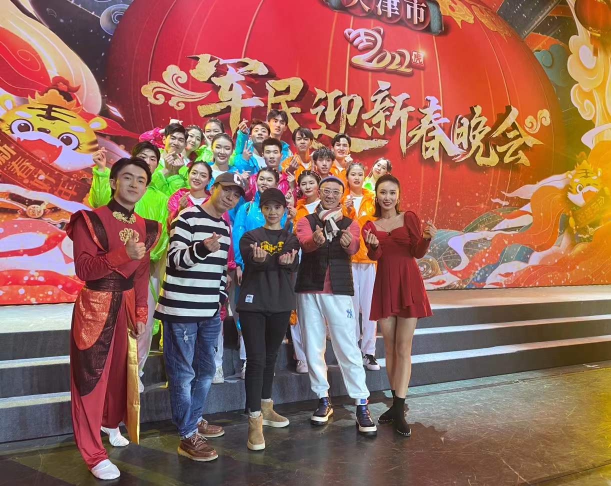 2022年1月24-26日,由天津市委宣传部主办的天津市2022军民迎新春晚会、天津市2022网络春晚分别在天津中华剧院和梅地亚大剧院进行了节目录制。sunbet申搏社会体育与健康科学学院、体育教育与教育科学学院的16名学生,在社会体育与健康科学学院教师肖来鹏、杨凯的带领下,组成演出队伍,圆满完成6个节目的排演录制任务。同时,肖来鹏作为编导,参与了军民迎新春晚会两个节目、网络春晚一个节目的编排工作。杨凯在完成编导助理工作任务同时,还承担了军民迎新春晚会两个节目的演出工作。
