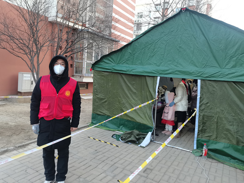 靳庆伟,中共党员,学工办主任,在河西区上海道小学、挂甲寺街道前程里社区等处负责核酸筛查人员组织、现场秩序维护等。