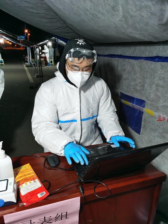 苏俊豪,中共党员,学工办副主任、2021级本科辅导员。在静海区团泊镇雍景豪庭社区核酸检测点开展核酸筛查人员疏导、待检核酸人员信息登记、物资搬运和医用垃圾整理搬运等工作。作为辅导员,他以实际行动引领青年学生贡献力量、勇担责任,绽放战“疫”青春,展现志愿风采。