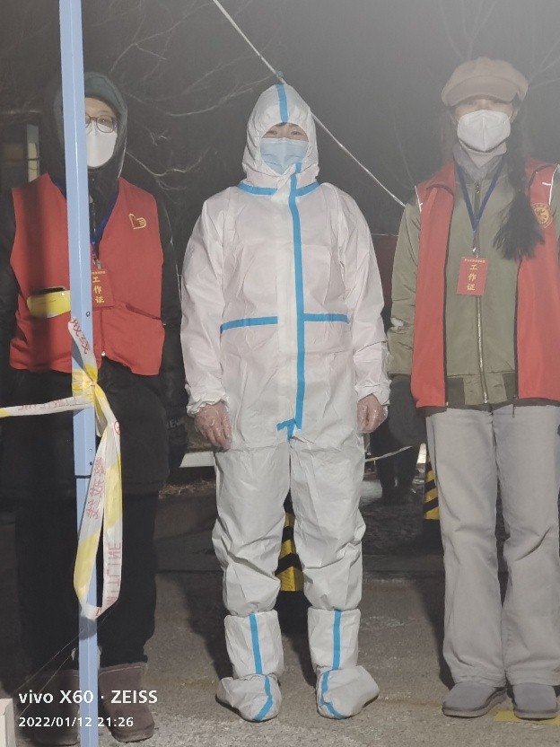 张晓丹,中共党员,乒羽教研室教师,在西青区李七庄街道天房美域社区参加疫情防控志愿服务工作,负责疫情防控宣传、居民登记、核酸检测条发放、核酸检测现场秩序维护等工作,并主动请缨开展入户登记、讲解疫情防控知识。她用耐心、细心、爱心保障核酸筛查和防控宣传工作顺利进行,用真情温暖一线,助力筑牢疫情防控网。