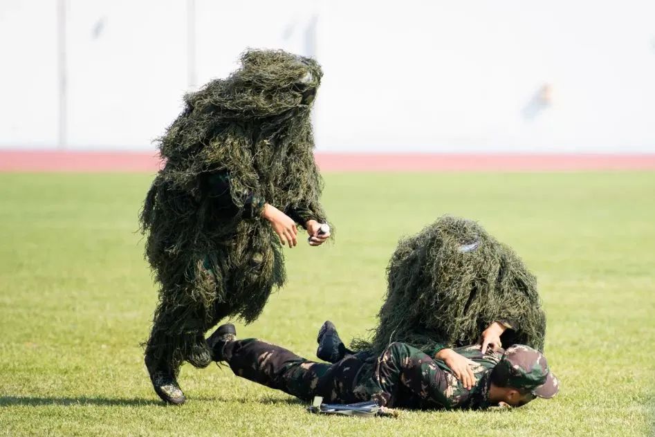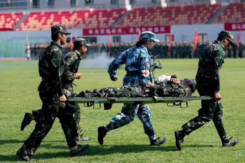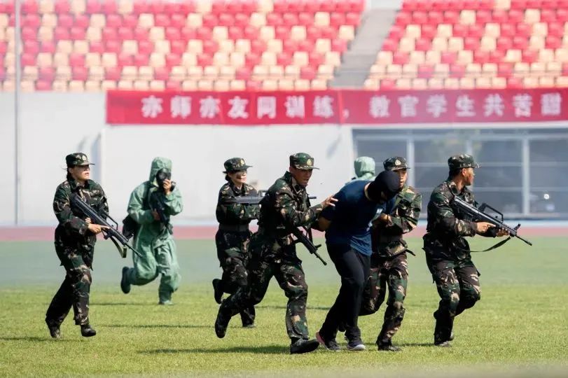 大会在雄壮的国歌声中拉开序幕。伴随着《分列式进行曲》,三军仪仗队和16个连队的千余名2022级新生,依次走过主席台接受检阅。同学们步伐坚定整齐、军姿飒爽挺拔、口号刚毅嘹亮、精神昂扬饱满,全面展示了军训成果。2022级本科生军训团摔擒方队与战术方队进行了军事技能表演。他们巧妙地将捕俘拳、打背包、战术对抗、核生化防护及战场救护等军事技能展示,与疫情防控演练相结合,展现了sunbet申搏学子情系国防、荣校报国的使命担当。