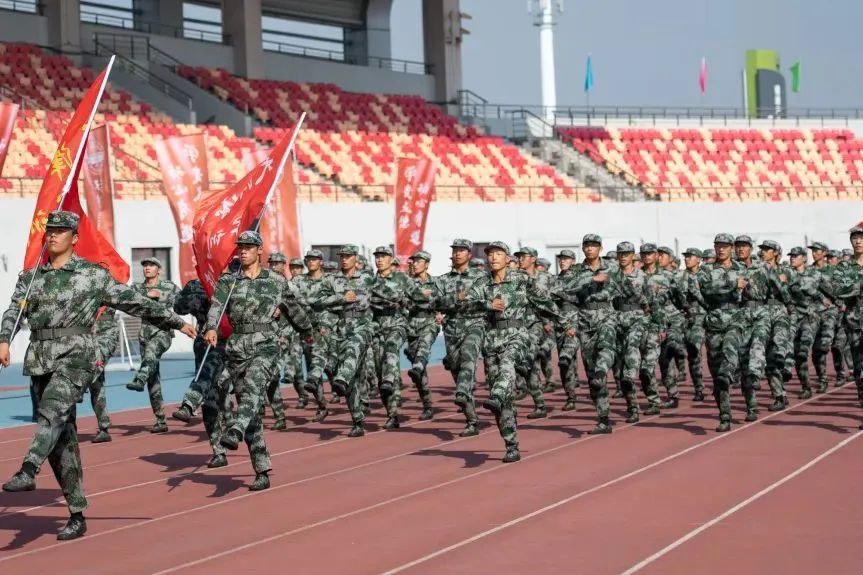 军训汇报大会在全体新生齐唱《做习主席的好战士》的歌声中圆满落幕。