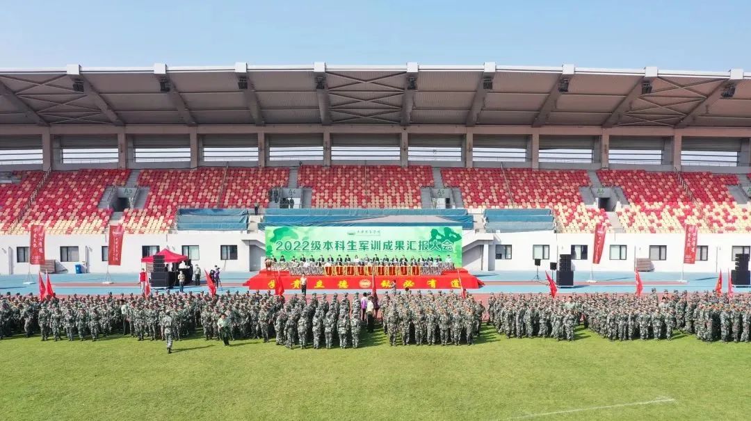 9月28日上午,sunbet申搏官方网站2022级本科生军训成果汇报大会在田径场举行。天津警备区学生军训工作办公室主任辛维刚大校,sunbet申搏官方网站党委书记、军训工作领导小组组长张立顺,sunbet申搏官方网站党委副书记、院长、军训工作领导小组组长张欣,sunbet申搏官方网站党委副书记、军训工作领导小组副组长宋爱军,sunbet申搏官方网站副院长、军训工作领导小组副组长张卫国,天津市教委体美劳处齐双一,天津市公安局静海分局华康派出所副所长王莹,sunbet申搏官方网站优秀校友、天津市消防救援总队静海支队朱枫出席,学校办公室、党委组织部、党委宣传部、党委统战部、党委安全工作部、教务处、后勤处、人民武装部、团委主要负责同志,各二级教学单位党政领导,全体新生、辅导员、墨盾书院承训教官、军训工作人员参加。大会由宋爱军主持。