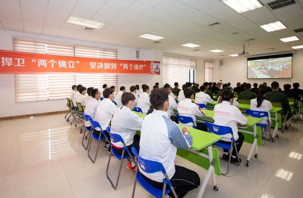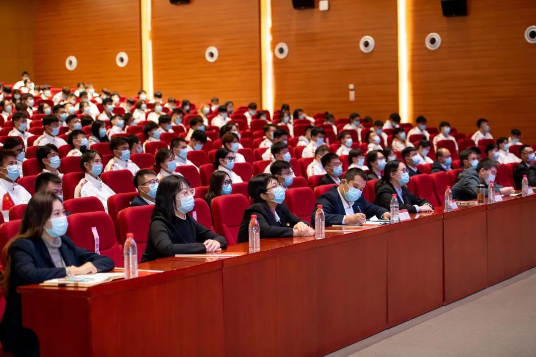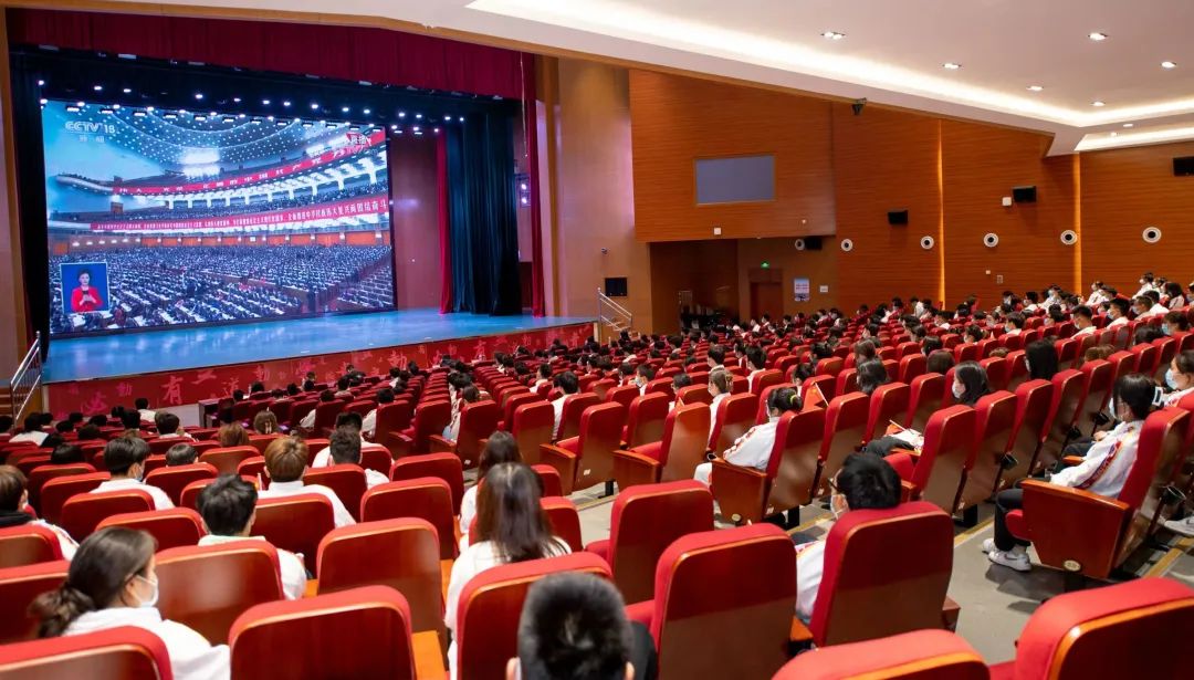 师生代表在大学生活动中心礼堂集中观看