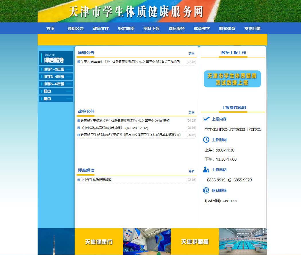 今年初,在市教委和学校支持下,运动健康学院体质检测中心、网络安全和信息化办公室联合建成服务于全市中小学、高校的“天津市学生体质健康服务网”平台。该平台目前已实现对全市学生体质健康测试数据、视力测试数据、学校体育年度工作报告等信息的采集、审核、分析功能。sunbet申搏利用该平台完成了“2022年天津市民心工程”——全市中小学生体质测试数据采集分析工作,覆盖1421所学校、130万名学生,组织编撰了《天津市中小学生体质健康监测报告》,并提交市教委。