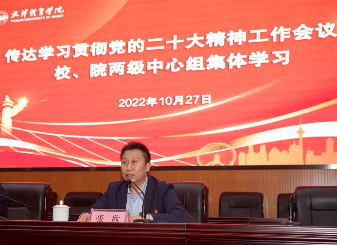 会议强调,学习宣传贯彻党的二十大精神是当前和今后一个时期学校的首要政治任务,是全体师生必须履行的重要政治责任、必须做好的重要政治工作。学校各级党组织要按照市委、市委教育工委的部署要求和学校党委的工作安排,加强领导、统筹谋划、精心组织、周密安排,迅速兴起学习宣传贯彻党的二十大精神热潮,铺天盖地,形成声势。一是要提高政治站位,在抓好学习培训上下功夫。深入开展多形式、分层次、全覆盖的学习培训,原原本本学、逐字逐句学、深入思考学,领导干部要带头学、带头讲、带头干,发挥示范引领作用,确保党的二十大精神传达到每一个党支部、每一名党员干部师生。二是要加强舆论引导,在抓好宣传阐释上下功夫。统筹学校媒体和宣传工作,全方位多渠道加强对党的二十大精神的宣传阐释。依托马克思主义学院成立宣讲团,广泛开展对象化、分众化、互动化宣讲,实现全校党支部宣讲全覆盖。用好课堂主渠道,统筹思政课和课程思政,及时将党的二十大精神进课堂、进教材、进学生头脑。在校园主干道路、核心区域进行宣传打造,广泛开展党的二十大精神主题校园宣传。三是要聚焦主责主业,在抓好学用结合上下功夫。坚持把学习贯彻党的二十大精神作为贯穿学校各项工作的核心主题,努力在学懂弄通做实上狠下功夫,把学习贯彻党的二十大精神与贯彻落实习近平总书记关于教育、体育的重要论述紧密结合起来,与贯彻落实市第十二次党代会精神紧密结合起来,与推动学校“十四五”规划和重点工作紧密结合起来,深入领会教育、科技、人才在现代化建设全局中的战略定位,主动对接京津冀协同发展战略,主动服务健康中国、体育强国建设,落实好立德树人根本任务,着力提升人才培养质量,统筹疫情防控和事业高质量发展,全力抓好学校各项工作落实落地。