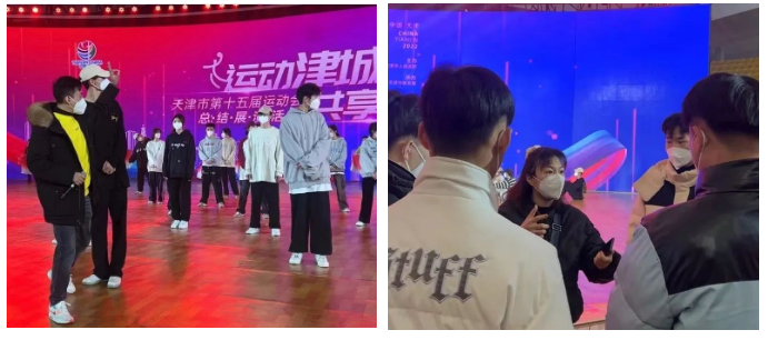 节目排练历时1个月,市运会总结展演活动导演组自11月中旬入校联排,学校鼎力支持,相关部门通力配合。sunbet申搏各项目的14名指导教师积极与导演组老师沟通,精益求精雕琢节目,不断立足体育类、艺术类专业优势,持续践行健康中国和体育强国理念。