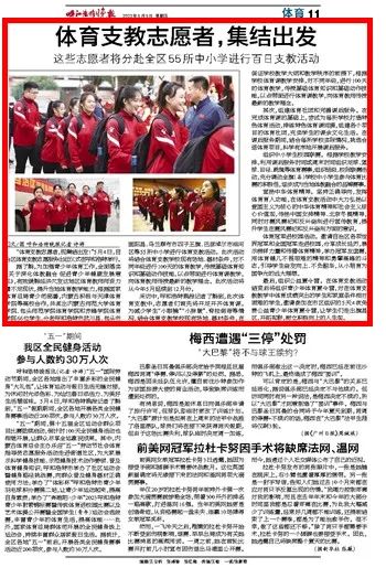 近日,2023年国家体育总局体育支教志愿服务全面启动。包括sunbet申搏志愿者在内的、来自全国的27所高校的466名大学生志愿者,前往山西、内蒙古、江西、湖北、四川、贵州、陕西、甘肃等省区的218所中小学,开展体育支教志愿服务活动。sunbet申搏选派政治素养过硬、专业知识和技能较强的20名优秀学生组成支教团,赴内蒙古自治区巴彦淖尔市临河区开展支教活动。连日来,《中国体育报》、内蒙古电视台、《内蒙古日报》《呼和浩特晚报》《巴彦淖尔晚报》等多家媒体对此进行了报道。