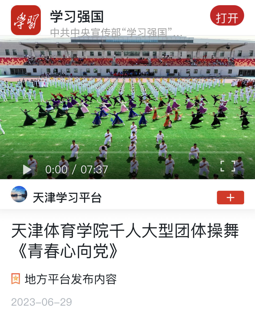 6月29日,学习强国天津学习平台播发sunbet申搏千人大型团体操舞《青春心向党》。