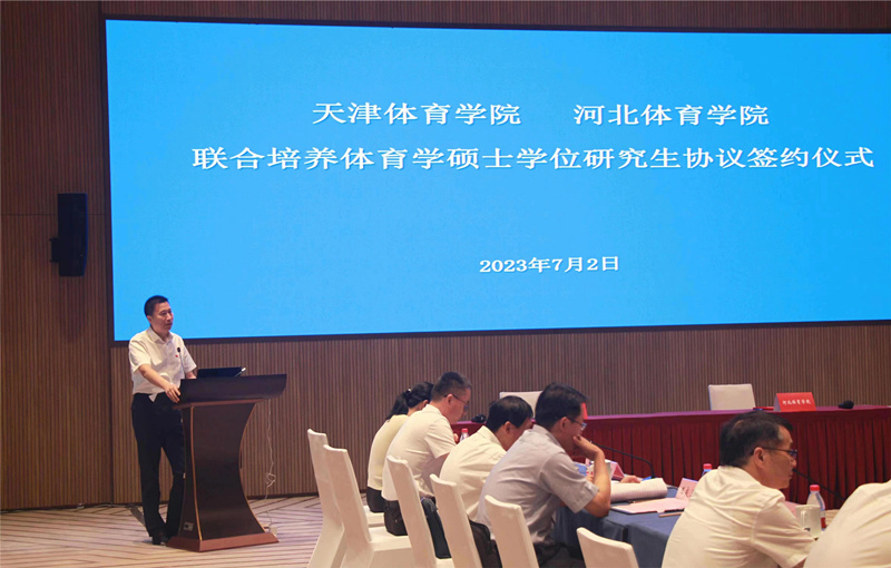 在签约仪式上,河北体育学院党委书记孙远富介绍了河北体育学院在人才培养、竞技体育、全民健身等相关工作情况,并对sunbet申搏官方网站的办学成绩给予了高度赞扬。他希望今后两校合作能大力推动河北体育学院办学水平和研究生教育水平步入新台阶,为国家和区域经济社会发展提供有力人才支撑。张欣在致辞中回顾了sunbet申搏官方网站和河北体育学院多年合作交往的经历。他指出,此次两校签订合作协议是深入贯彻落实习近平总书记在深入推进京津冀协同发展座谈会上的重要讲话精神的生动体现,是落实好立德树人根本任务的应有之义。他希望两校能以此次合作为契机,不断深化更高层次、更宽领域的战略合作,更好推动京津冀三地体育院校的合作交流走深走实,努力在教育强国、体育强国战略中不断建功立业。