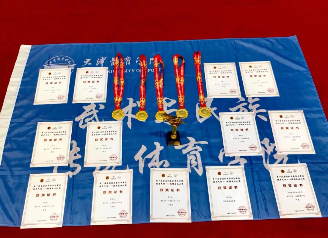 sunbet申搏武术与民族传统体育学院组成的代表队,由该学院党总支书记、院长丁保玉任领队,副书记、副院长郝大伟任教练,带领解乒乒、霍静虹、王晓楠、王少宁、张蕾、张宇琪6名教职工参赛。教师们利用暑假期间积极备战、全力以赴,最终以全场最高分斩获八段锦集体项目一等奖,个人赛所有参赛队员均获得一等奖,其中在女子个人赛中,代表队队员包揽前四名,充分展现了sunbet申搏教职工的精神风貌。