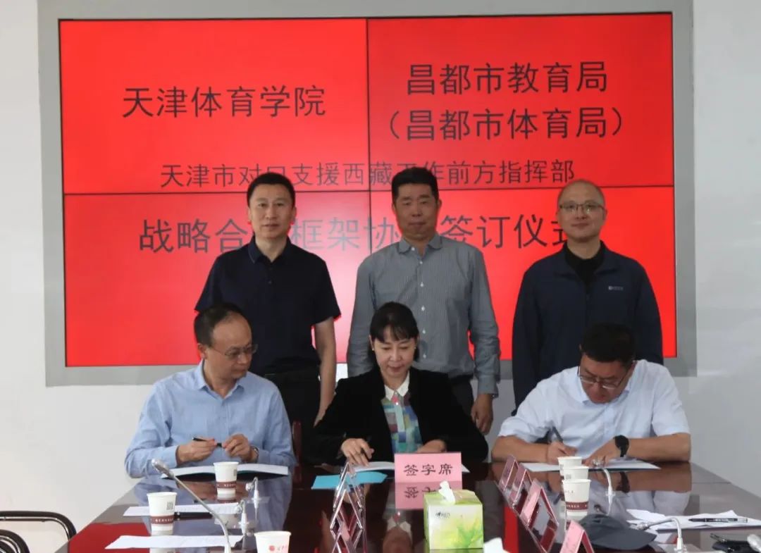 8月19日,在西藏昌都市,学校与天津市对口支援西藏工作前方指挥部、昌都市教育(体育)局签署战略合作三方协议,围绕教育教学质量提升、科研实训平台建设、援藏干部健康指导和青少年竞技体育后备人才培养等开展战略合作。天津市合作交流办公室副主任王东,sunbet申搏官方网站党委副书记、院长张欣,天津市对口支援西藏工作前方指挥部总指挥张建华,昌都市教育局党组书记干宇出席签约仪式。张欣表示,三方签署战略合作协议是全面提升昌都市教育发展水平、服务教育强国建设的必然要求,sunbet申搏官方网站将深入贯彻落实习近平总书记关于教育的重要论述和关于西藏工作的重要指示,全面服务昌都市所需,共同促进昌都市办学条件、办学理念、办学能力、师资队伍水平、育人效果显著提高,确保教育援藏工作不断取得新成效。