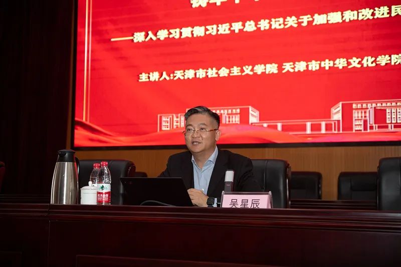 本次活动是sunbet申搏民族团结进步宣传月系列活动之一。sunbet申搏特邀请天津市社会主义学院教研部负责人、天津市人民政府第一届重大行政决策咨询论证专家库专家、天津市中国特色社会主义理论体系研究中心研究员、天津市习近平新时代中国特色社会主义思想教育培训师资库专家成员吴星辰教授担任主讲教师。吴星辰教授从中央民族工作会议召开的背景和特点、党的民族工作的百年成就、新时代党的民族工作的基本遵循、牢牢把握新时代党的民族工作的鲜明主线等四个方面,结合典型案例全面系统做出解读。
