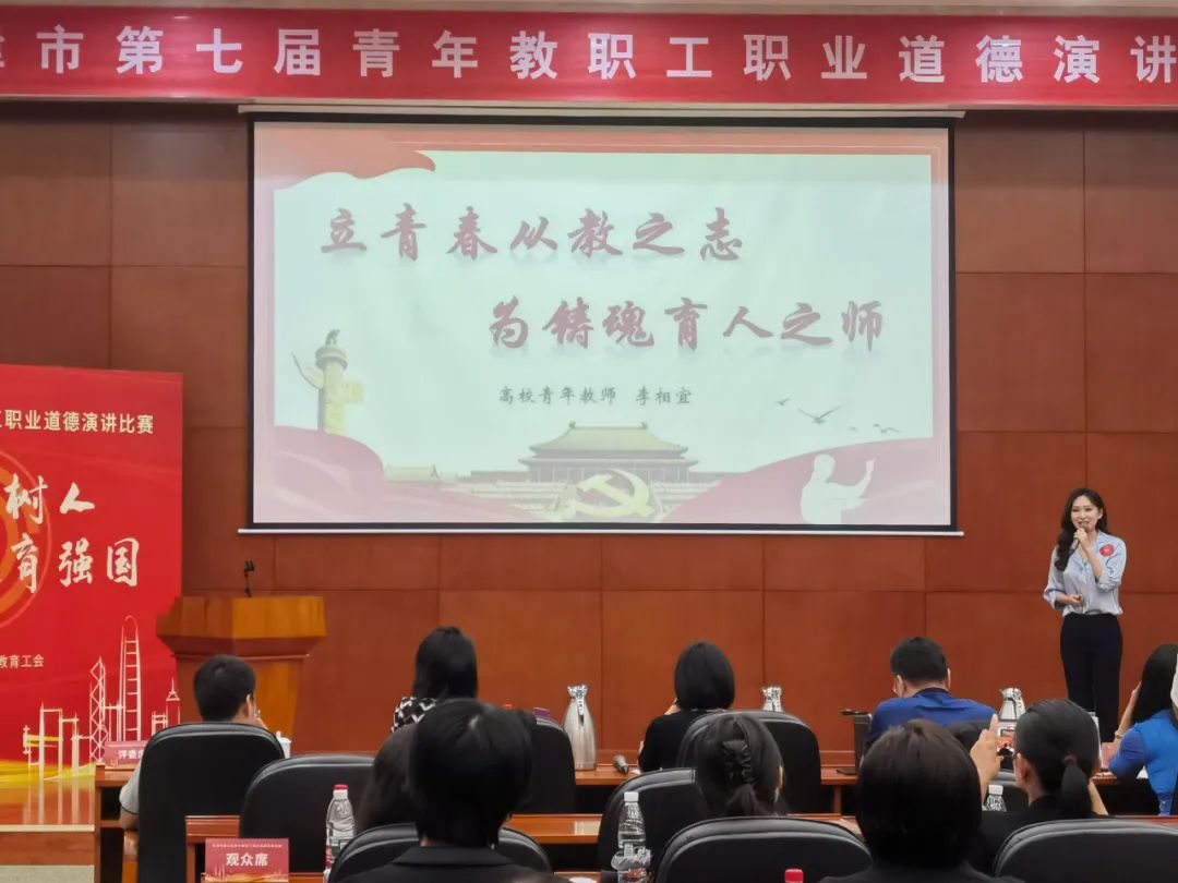 为深入学习贯彻习近平新时代中国特色社会主义思想和党的二十大精神,大力弘扬劳模精神、工匠精神,教育引导全市广大教职工涵养职业道德、建设教育强国,9月26日,天津市教育工会组织举办天津市第七届青年教职工职业道德演讲比赛,共有全市29所高校附院、16个区教育工会的44名选手参赛,sunbet申搏教师李相宜代表学校参赛。经过全天九个小时的赛程,李相宜在激烈的角逐中以动人的讲述风格、精湛的演讲水平、出色的现场发挥斩获一等奖。
