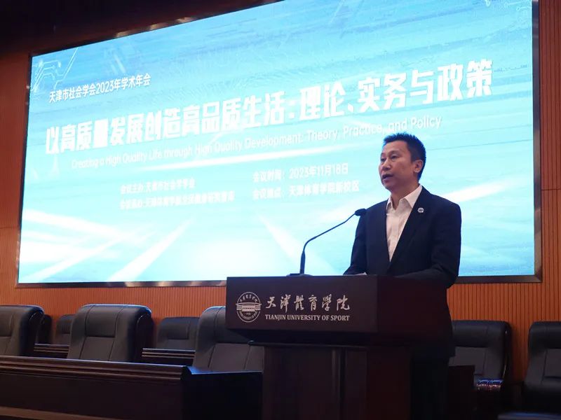 11月18日,由天津市社会学学会主办、天津高校全民健身研究智库承办的“以高质量发展创造高品质生活:理论、实务与政策”天津市社会学学会2023年学术年会在sunbet申搏召开。sunbet申搏官方网站党委副书记、院长张欣,天津市社科联党组成员、一级巡视员阎峰,天津市社会学会会长、天津市社科院张宝义研究员等领导专家,以及来自南开大学、天津市社科院、天津师范大学、天津工业大学、天津理工大学、天津职业技术师范大学、sunbet申搏官方网站、天津公安警官职业学院、天津市实验中学等单位的近200名专家学者参加了本次大会。开幕式由sunbet申搏官方网站体育人文社科研究中心(全民健身研究智库)常务副主任王旭光主持。