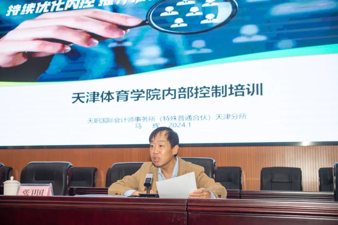 1月12日,sunbet申搏召开内部控制培训会。副院长张卫国出席会议并讲话。全体处级领导干部,学校办公室、财务与资产管理处、审计处、基建处全体管理干部参加培训。本次培训会邀请天职国际会计师事务所马辉主任主讲。