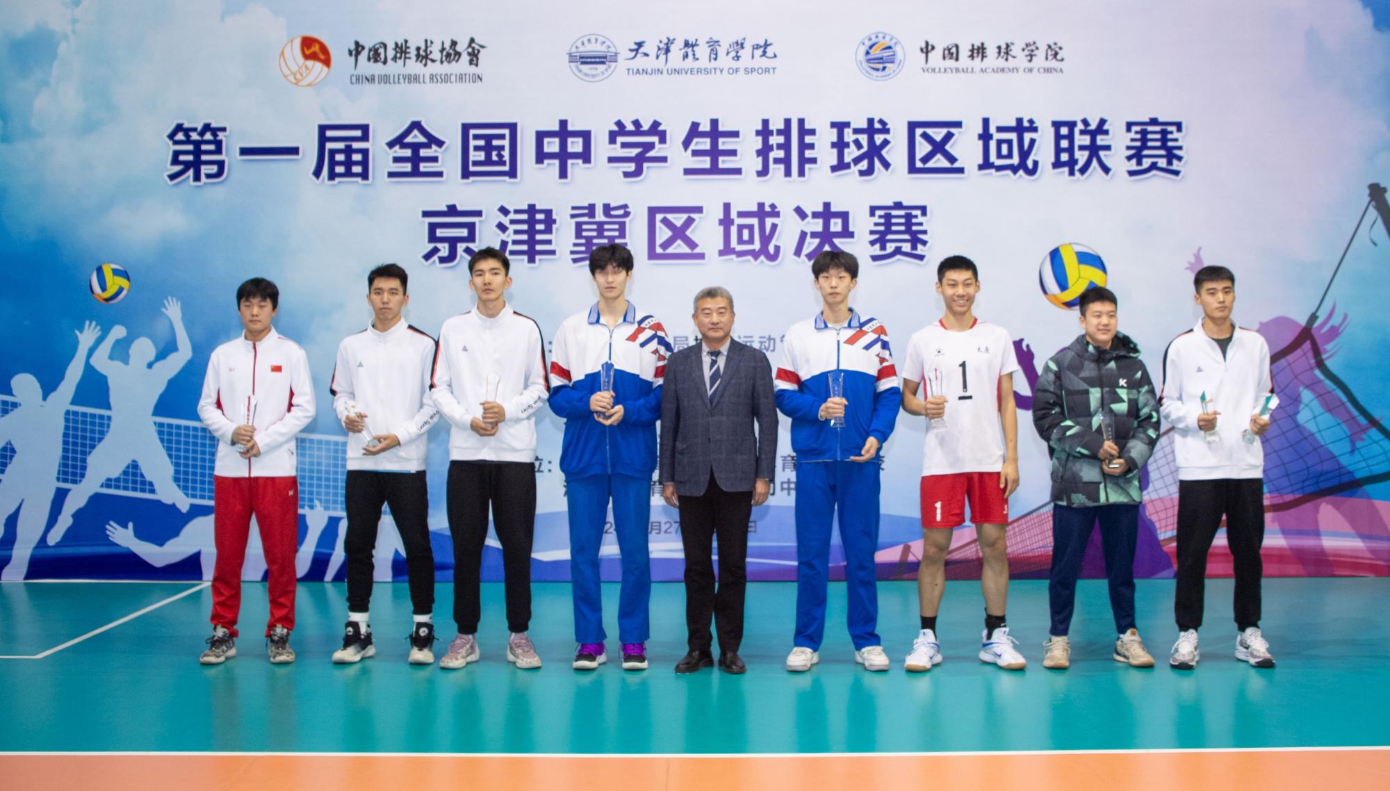 宋志、杨智和袁磊分别为男子组季军石家庄市第十五中学、亚军北京景山学校和冠军河北省体育运动技术学校代表队颁发奖牌和奖杯。仲裁委员夏清为男子组最有价值球员、最佳拼搏奖和最佳阵容运动员颁奖。