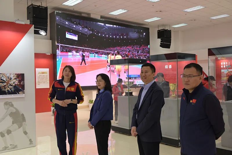 外联司、竞体司一行先后参观了体卫融合与健康促进实验室、攀岩馆、乒羽馆和中国女排精神科普基地,开展了以“女排精神代相传、豪情壮志迎巴黎”为主题的党日活动。