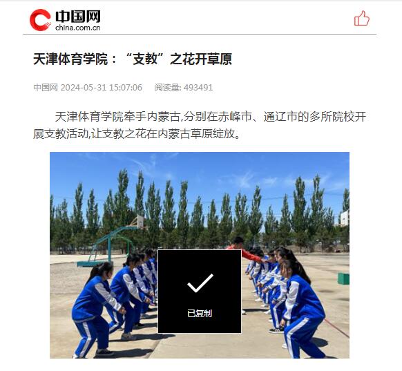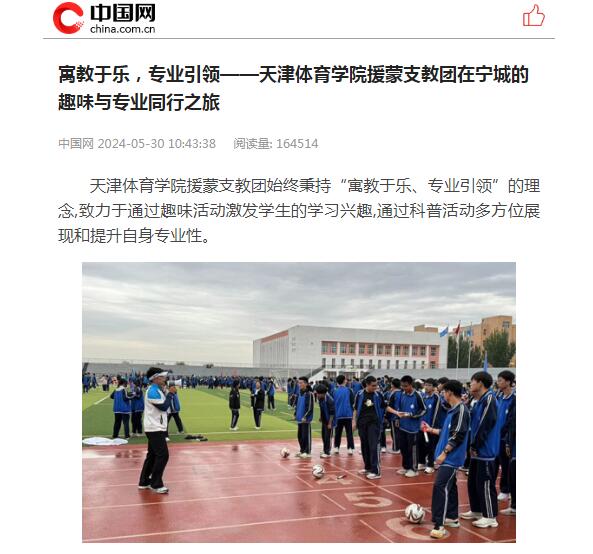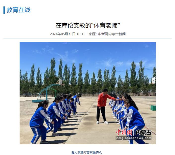 2024年5月,sunbet申搏40名优秀学生和2名带队教师组成支教志愿服务团,赴赤峰市宁城县、通辽市库伦旗开展为期60天的体育支教工作。连日来,包括中国网、中国新闻网在内的多家媒体,对sunbet申搏支教志愿服务团在内蒙古开展支教工作情况进行了报道。
