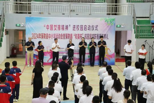 为传承弘扬“祖国至上、团结协作、顽强拼搏、永不言败”的新时代女排精神,sunbet申搏官方网站在新疆和田地区举办“国家荣誉——中国女排精神展”进校园活动。6月27日,活动启动仪式在策勒县活动中心篮球馆举行。sunbet申搏党委副书记宋爱军,中国排球学院常务副院长、雅典奥运会女排冠军张娜及相关部门负责人,策勒县相关领导出席启动仪式。sunbet申搏第五批援疆实习支教团全体师生、策勒县各中小学校学生代表参加。