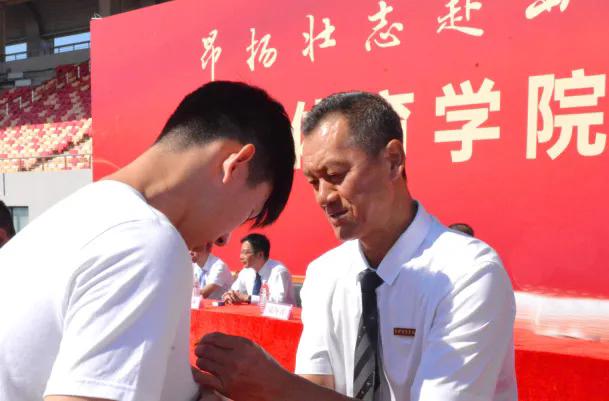 主席台前排就座领导为新生代表佩戴校徽,赋予2024级新生“sunbet申搏人”这一承载着时代使命与体育荣光的称号。