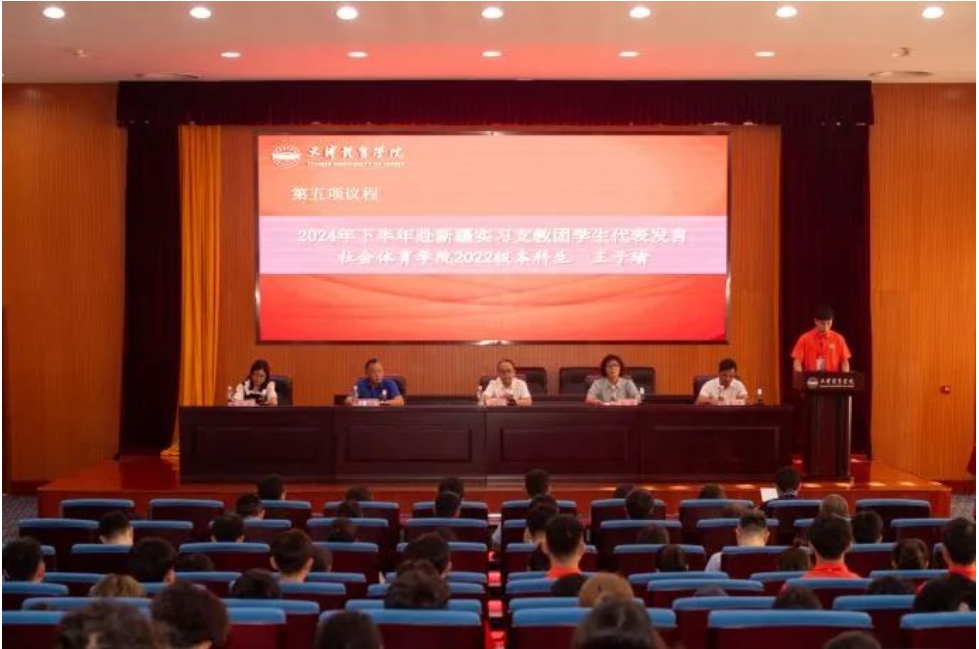 2024年下半年赴新疆实习支教团学生代表王子瑜和带队教师刘婷先后发言。