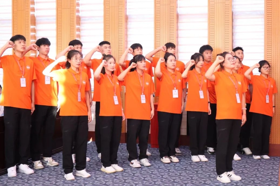 支教团全体师生宣誓,带队教师刘婷领誓。