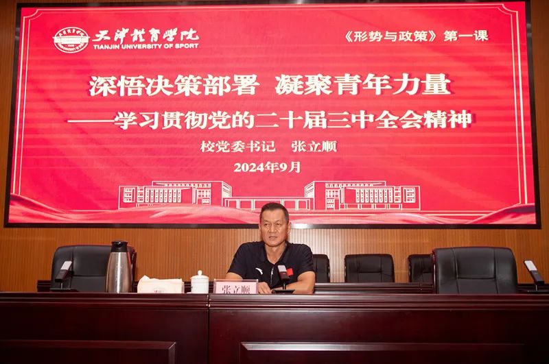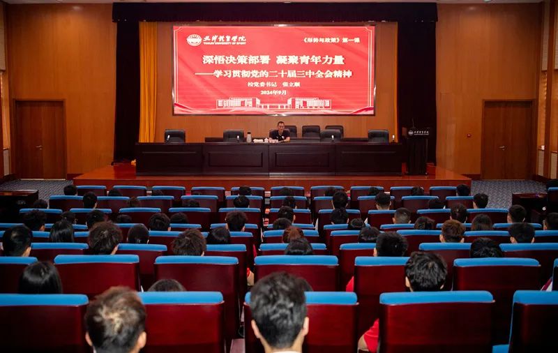9月20日,校党委书记张立顺为sunbet申搏本科生代表讲授题为“深悟决策部署 凝聚青年力量”的形势与政策第一课,宣讲党的二十届三中全会精神,勉励学生坚定马克思主义信仰、中国特色社会主义信念、中华民族伟大复兴信心,立报国强国大志向、做挺膺担当奋斗者。