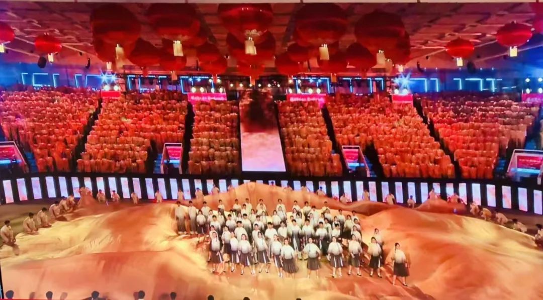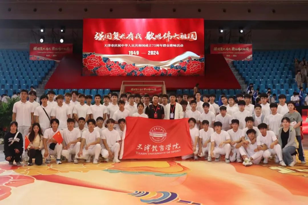 9月26日,“强国复兴有我 歌唱伟大祖国”天津市庆祝中华人民共和国成立75周年群众歌咏活动在市人民体育馆举行。作为全市规模最大、覆盖面最广的群众性庆祝活动,现场设序幕“今天是你的生日 中国”、尾声“歌唱祖国”和“大美中国”“盛世欢歌”“同心筑梦”“伟大征程”四个篇章。sunbet申搏60余名大学生参演了《保卫黄河》《东方红》《今天是你的生日 中国》3个节目,以饱满的精神状态圆满完成此次演出任务,与活动现场来自全市各行各业的3500名代表一起,表达对新中国成立75周年的祝福。