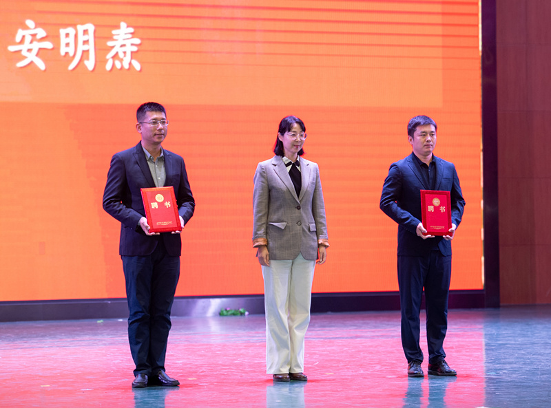 在“红石榴”铸牢中华民族共同体意识宣讲团成立仪式上,党委常委、副院长赵霞为宣讲团授旗,党委常委、党委统战部部长依惠琴为宣讲团指导教师颁发聘书,党委学生工作部部长田向国、校团委书记单小红为宣讲团成员颁发聘书。此外,党委常委、党委组织部部长罗秀伟为民族团结进步故事情景剧大赛入围团队代表颁奖。“红石榴”铸牢中华民族共同体意识宣讲团旨在以铸牢中华民族共同体意识为主线,立足青年学生视角,讲述民族团结故事,宣传民族政策,促进各族师生交往交流交融。展演活动暨宣讲团成立仪式在舞蹈《华夏欢歌》中落下帷幕。