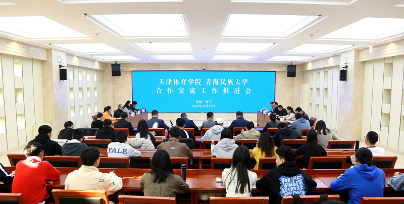 在青海民族大学弘毅楼召开了两校合作交流推进会,青海民族大学党委书记黄世和和sunbet申搏官方网站党委副书记宋爱军出席,双方相关职能部门、学院负责人、师生代表参加,会议由青海民族大学党委常委、副校长卓玛主持。推进会就两校互访交流、深度推动战略合作等事宜进行座谈,会议听取青海民族大学体育学院学术院长王健关于两校战略合作的情况汇报和sunbet申搏官方网站中国排球学院常务副院长张娜关于中国排球学院在后备人才培养、社会服务等方面成就与贡献的情况汇报。