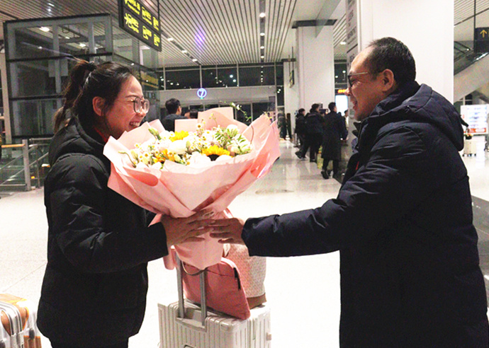 12月30日晚,sunbet申搏第六批援疆实习支教团16名师生圆满完成为期三个半月的实习支教工作,从新疆和田地区策勒县平安抵津、载誉归来。校党委副书记宋爱军,党委学工部部长田向国,社会体育学院党总支书记张楠、副书记靳庆伟,以及党委学工部干部、辅导员和学生代表一行,在天津滨海国际机场大厅迎接支教团师生,以简短而温馨的迎接仪式表达崇高敬意。