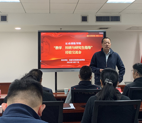 为深入学习习近平总书记关于教育、体育的重要论述,贯彻落实全国研究生教育会议精神和sunbet申搏事业发展“十四五”规划中关于人才培养的相关要求,加强导师队伍建设、提升导师队伍水平,积极营造教师教学与科研交流的良好氛围,进一步提升研究生科研素养,运动训练学院于2022年10月11日,启动教师教研交流与提升研究生科研素养系列活动。党委副书记、院长张欣出席启动仪式并讲话,科研与研究生处负责人、运动训练学院领导班子成员和全体教师参加。启动仪式由运动训练学院副院长李赞主持。