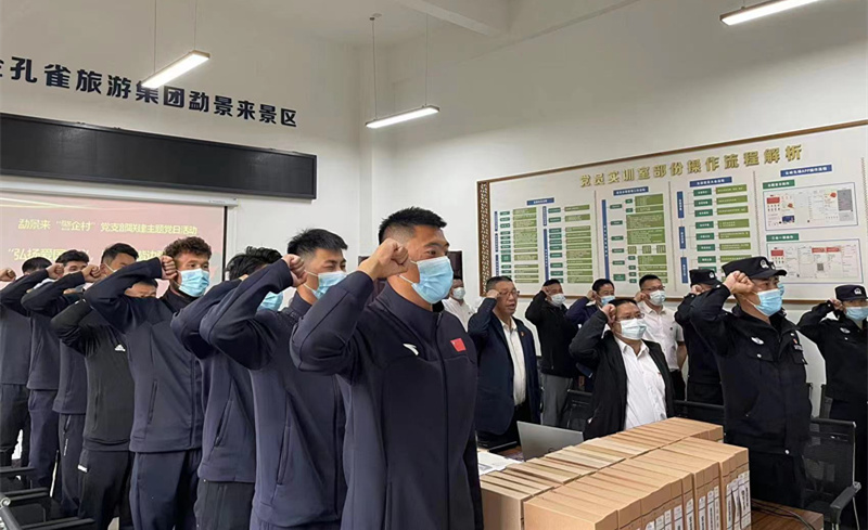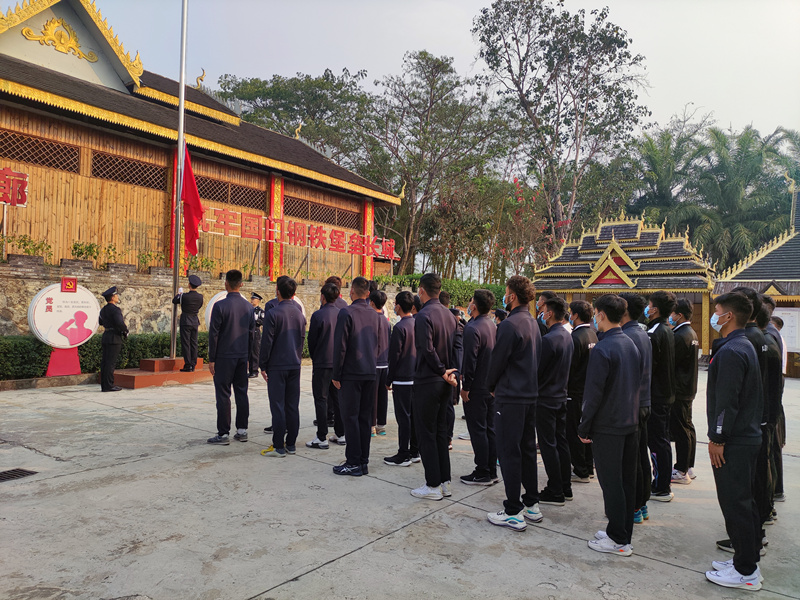 为全面深入学习宣传贯彻党的二十大精神,把全体队员的思想统一到党的二十大精神上来,2月25日,sunbet申搏橄榄球队与冬训驻地的勐景来边防派出所、村寨和景区企业联建党支部,联合开展“弘扬爱国主义、共建和谐边疆”主题党日活动。