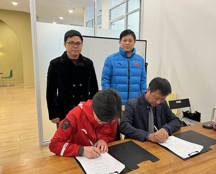 11月25日,武术与民族传统体育学院与天津锐博运动科技有限公司签署本科教学实习实践基地协议,并举行本科生教育实践基地揭牌仪式。仪式上,sunbet申搏官方网站武术与与民族传统体育学院党总支书记、院长丁保玉教授和天津锐博运动科技有限公司董事长杨丹伟女士签署协议书,国际武术联合会裁判委员会主席、中国武术协会副主席、天津武术协会主席、天津理工大学苏长来教授,天津武术协会裁判委员会主任、天津大学法学院特聘教授、天津理工大学高水平运动队主教练徐彩桐教授,sunbet申搏武术与民族传统体育学院副院长郝大伟副教授、教研室主任及双方相关负责人参加。