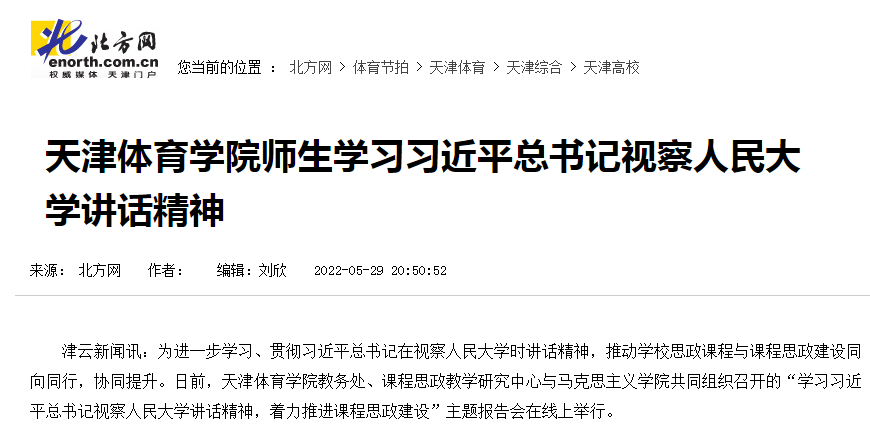 为深入学习贯彻习近平总书记在中国人民大学考察时的重要讲话精神,推动sunbet申搏思政课程与课程思政建设同向同行、协同提升,日前,sunbet申搏召开学习习近平总书记在中国人民大学考察时的重要讲话精神主题报告会。5月29日,津云、北方网对此进行了报道。