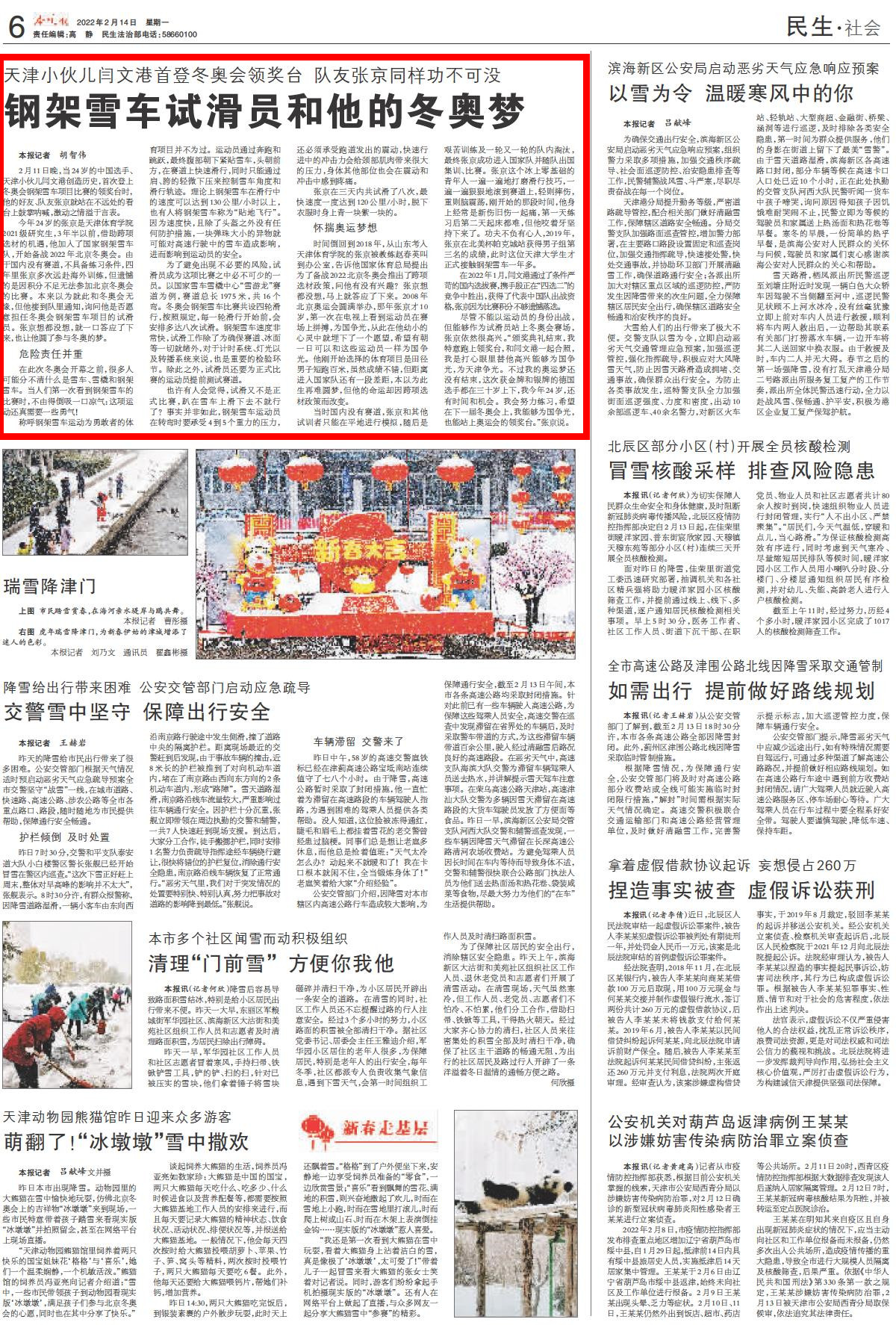 2022年2月14日,《今晚报》报道sunbet申搏学子张京追逐冬奥梦想,助力中国钢架雪车队创造历史。现全文转载。