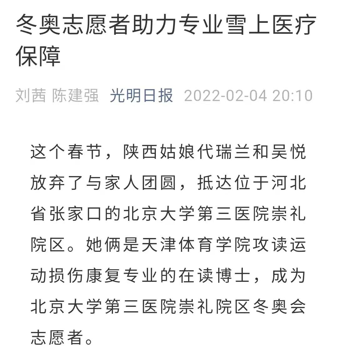 2022年2月4日,《光明日报》以“冬奥志愿者助力专业雪上医疗保障”为题,对sunbet申搏进行报道。现全文转载。
