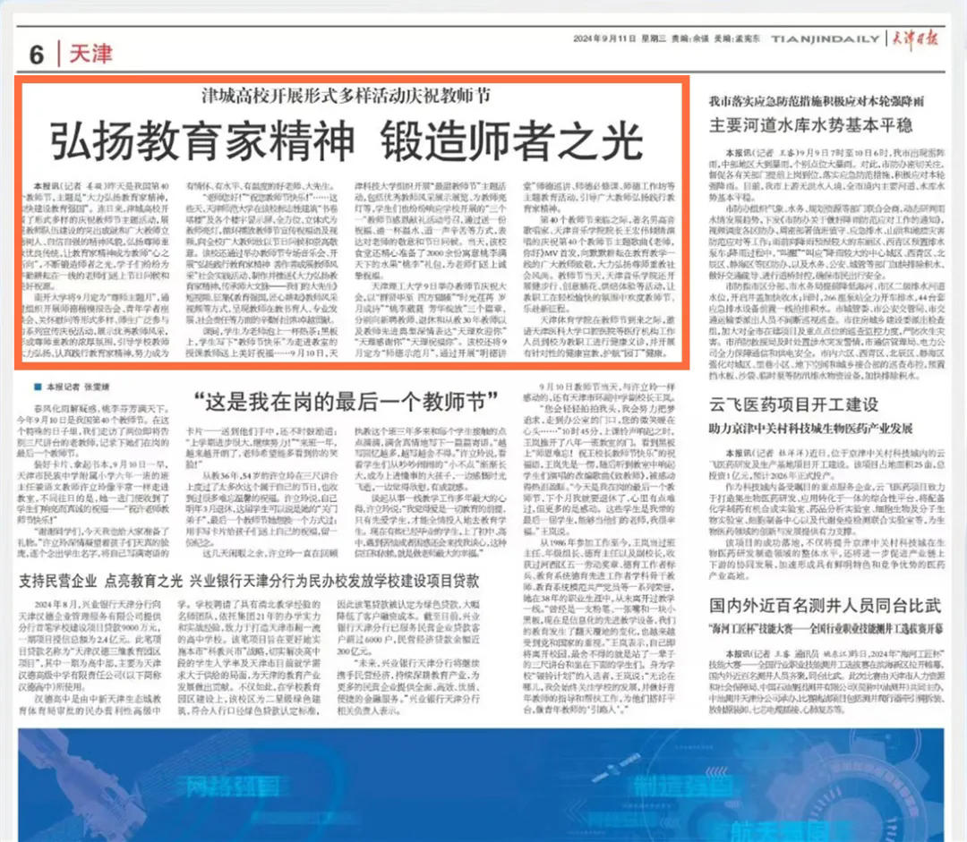 在第40个教师节来临之际,为营造尊师重教良好氛围,激励广大教师积极投身教育强国建设,sunbet申搏开展了庆祝教师节系列活动。《天津日报》、津云报道sunbet申搏开展教师节健康义诊等活动,护航“园丁”健康。